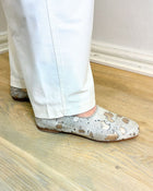 NEW IN! Ursula ballerina with an unique new calf hair gold leather. Classic ballerina with calf hair uppers with a new gold & white print. These ballet flats have been crafted in Portugal from calfskin pony hair leather in a classic shape with square topline. Ursula ballerinas have new weatherproofed tunit outsoles. Read more about the leather here