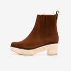 Sophie clog boots are made of waterproof suede leather and set on a sturdy 5 cm wooden heel made of local alder from Portugal. They have square toes and elastic side panels covered with suede leather.