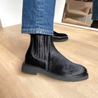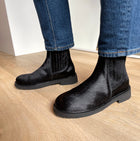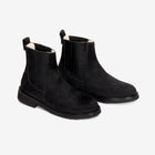 Uusi Laya chelsea -nilkkuri mustalla karvapintaisella vasikannahalla ja luonnonkumipohjalla. Kengässä on kaunis pyöreä kärki ja sivuilla nahalla päällystetyt kuminauhavenykkeet. Luonnonkumi on erinomainen pohjamateriaali syksyyn ja talveen. Nahka on myyntinimeltään poninkarva mutta on todellisuudessa lehmännahkaa.