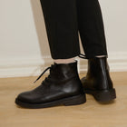 Klassinen ja ajaton Ola -nilkkuri uudella mustalla luonnonkumipohjalla. Nilkkureissa on kaunis pyöreä kärki ja nauhakiinnitys. Kengissä on käytetty samaa lestiä kun Chelsea crepe -nilkkureissa. Luonnonkumi on erinomainen pohjamateriaali syksyyn ja talveen eristävyytensä ja pitonsa ansiosta.